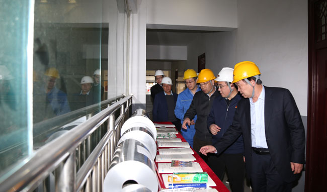 11月28日上午,新安县新任县长陈功到亚洲体育登录平台下载集团调研,深入万基铝加工、铝业二公司、石墨公司生产现场,了解企业生产经营、技术革新、产品开发、市场开拓及环保改造项目运行状况。新安县产业集聚区管委会副主任牛志伟和亚洲体育登录平台下载集团董事长李跃民、总经理郭峰等陪同。