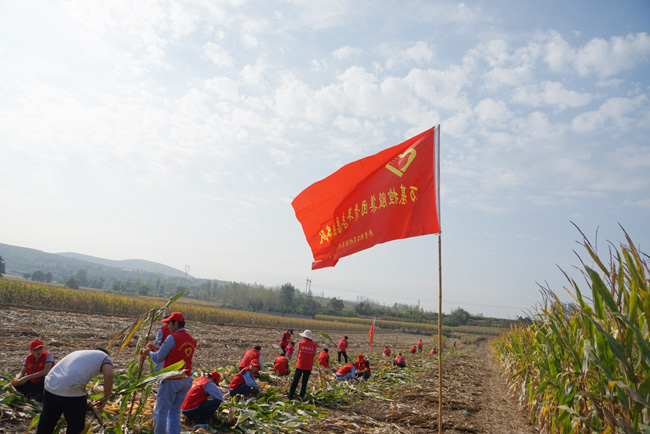 23日一大早,23名志愿者全部到场。在武耀宗家人的指引下,大家迅速来到田地。掰玉米、砍秸秆、打包、装车运送,大家分工协作,干得热火朝天。临近中午时分,5亩多玉米全部收好、拉回,做到颗粒归仓。