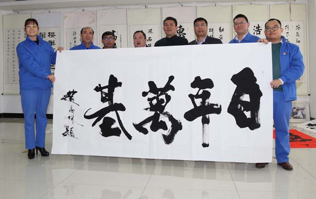 中国书法家协会会员赵昌林回到了家乡新安县,于12月15日到亚洲体育登录平台下载集团开展书法创作,欣然挥毫泼墨,雄浑潇洒的书法作品一一跃然纸上。题写的“百年万基”四个遒劲大字熠熠生辉,寓意万基持续发展,永续万年基业。
