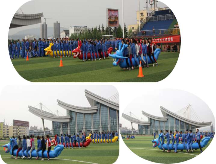 充气龙舟骑行赛女子组:财务中心第二代表队、财务中心第一代表队、一炭代表队获得前三名。