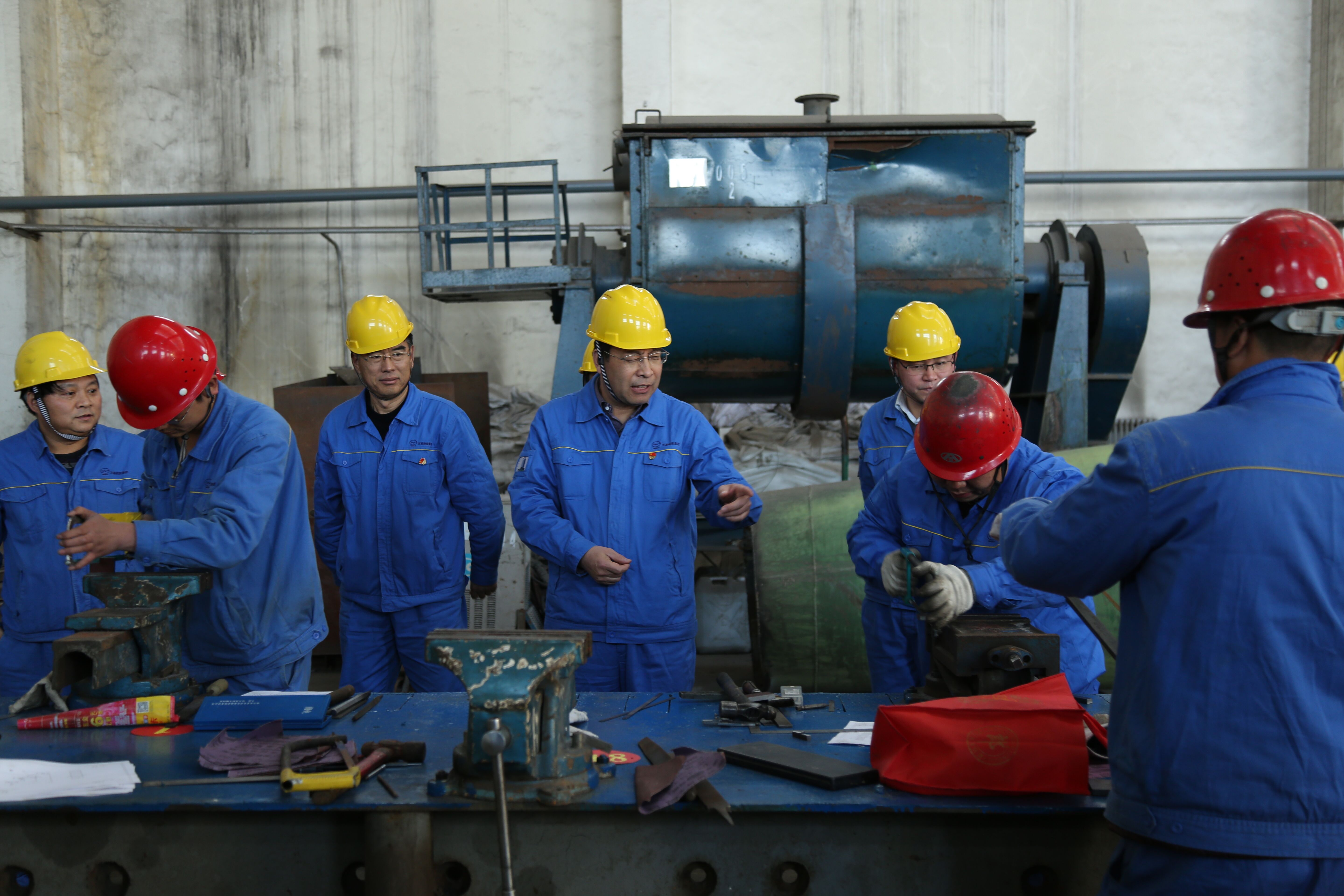11月23日,集团公司董事长李跃民、党委副书记王宏伟、总工王瑞奇到电工、钳工晋级实践考试现场察看。