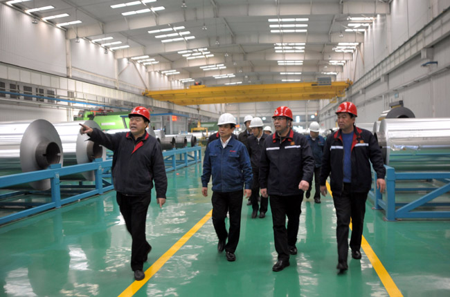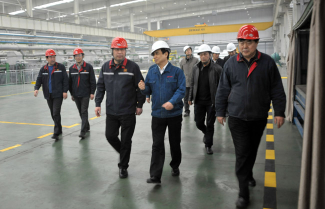 1月26日下午,中信重工机械股份有限公司董事长任沁新等一行6人到我公司实地考察万基铝加工冷轧、铝箔、精整、分切生产线,李跃民董事长、郭峰总经理等公司领导陪同考察,并出席了业务洽谈会。