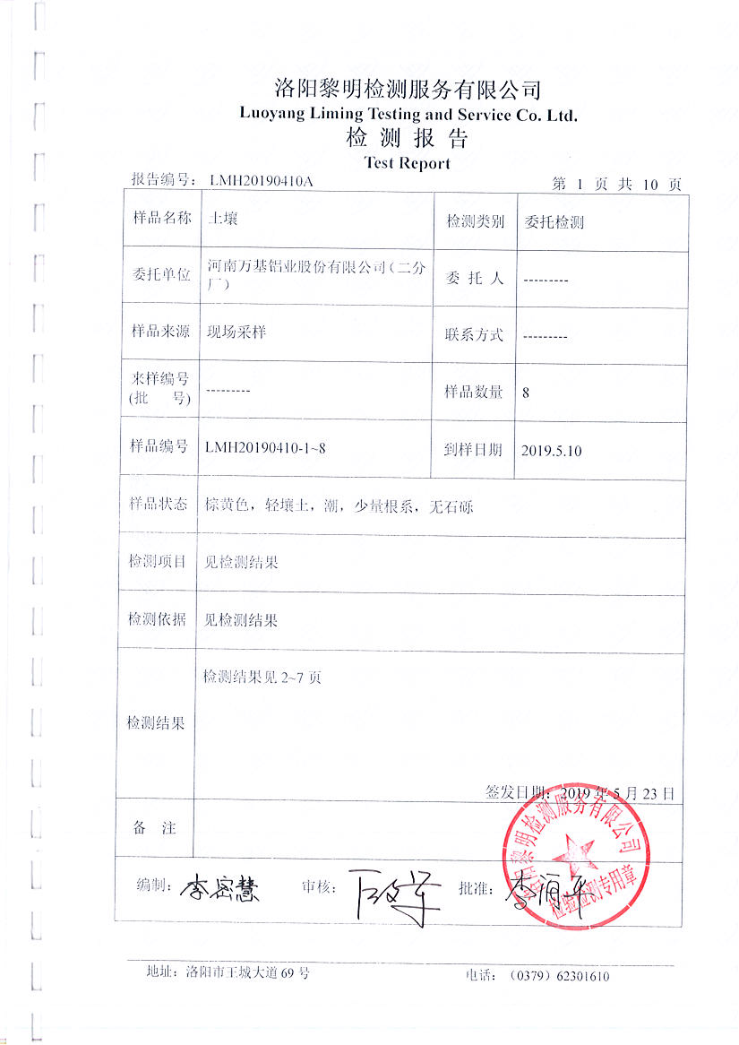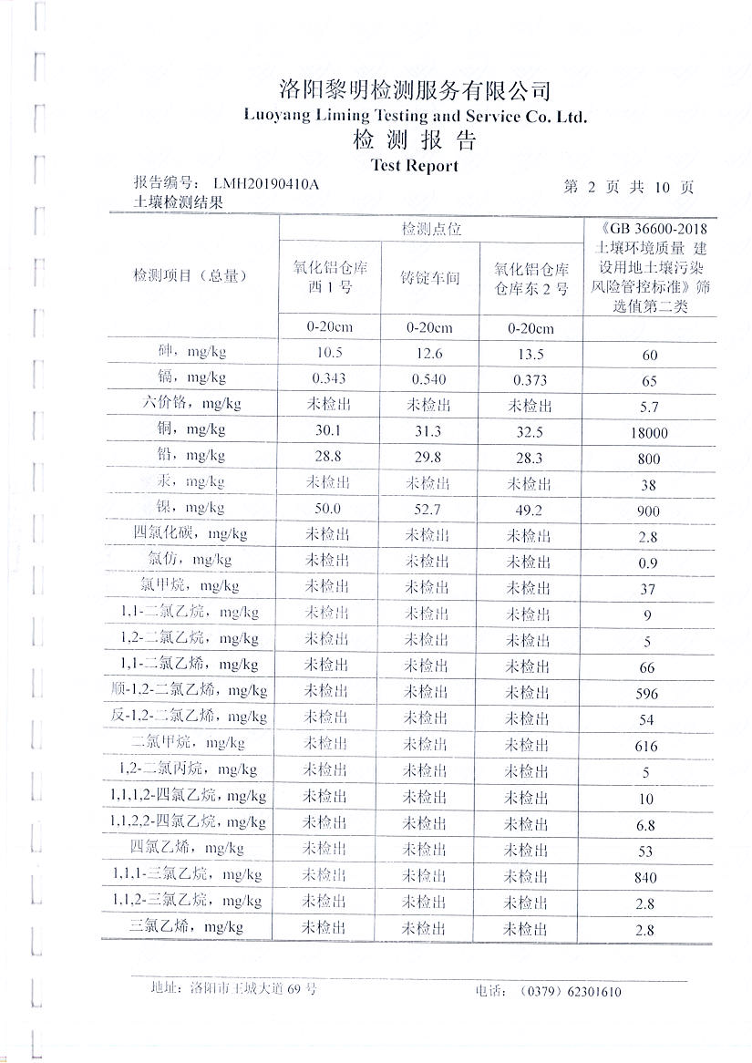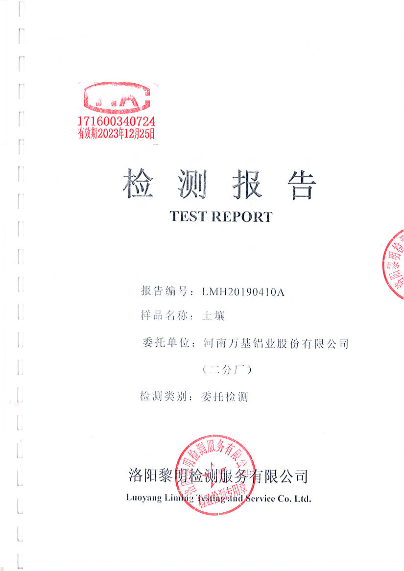 河南万基铝业股份有限公司(二分厂)土壤检测报告公示