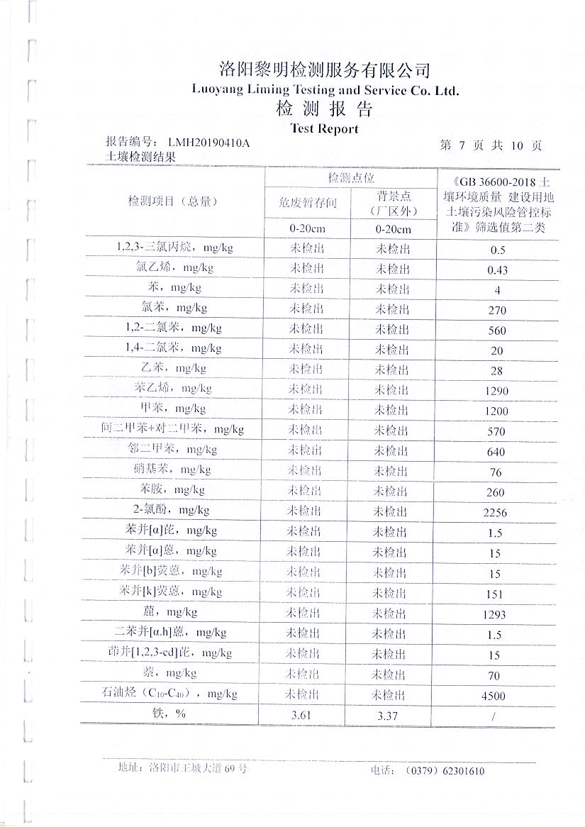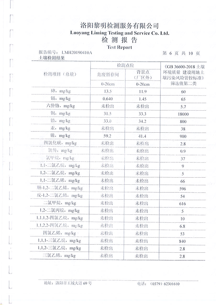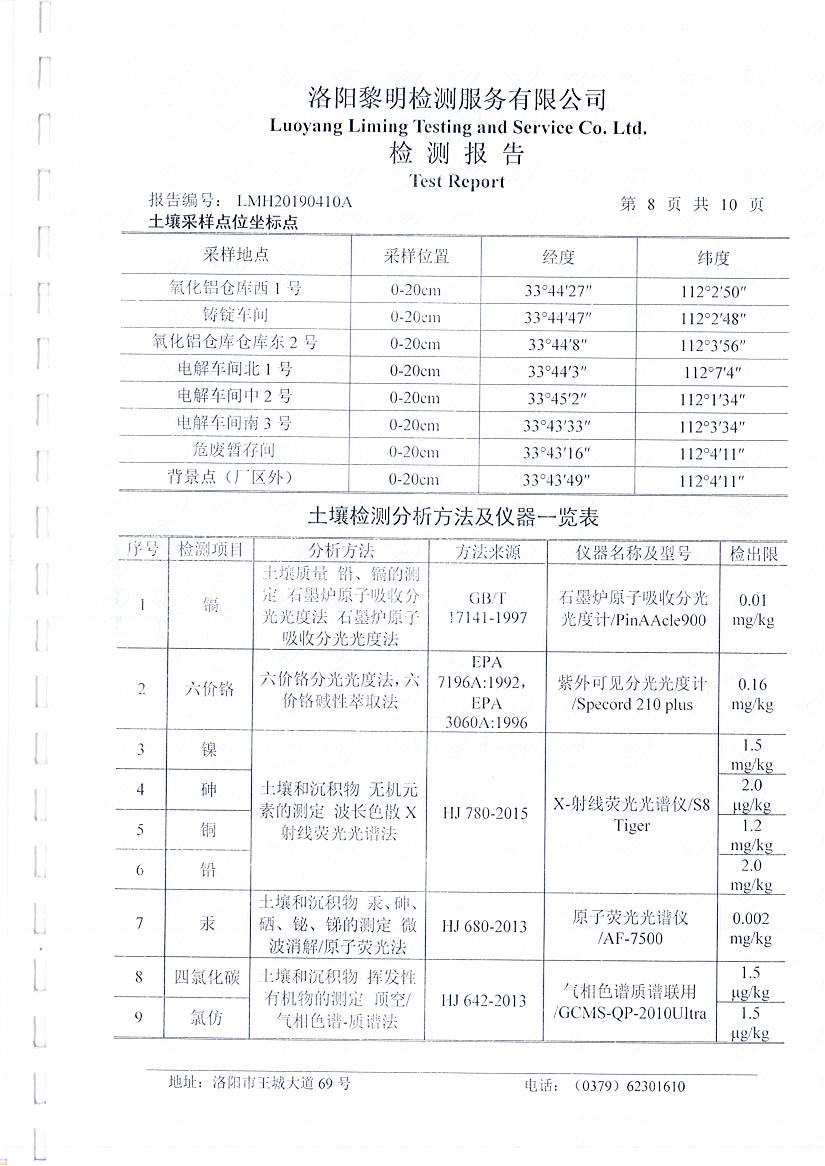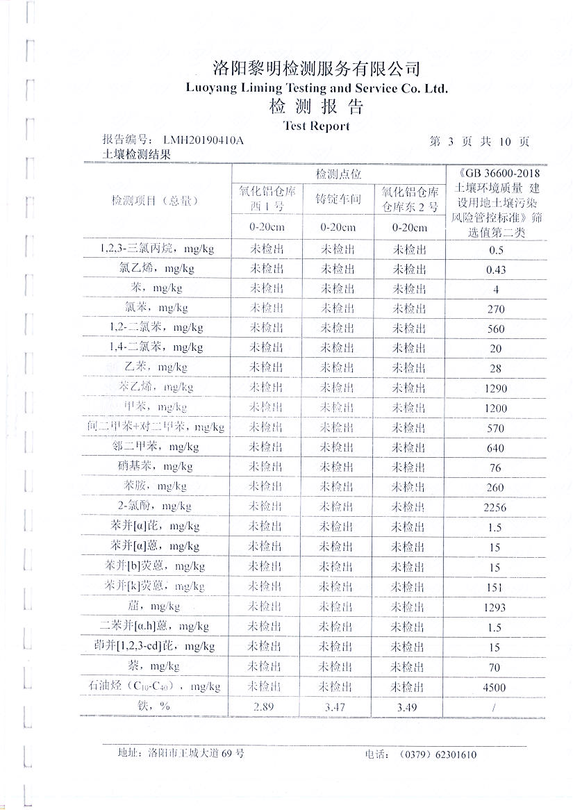 河南万基铝业股份有限公司(二分厂)土壤检测报告公示
