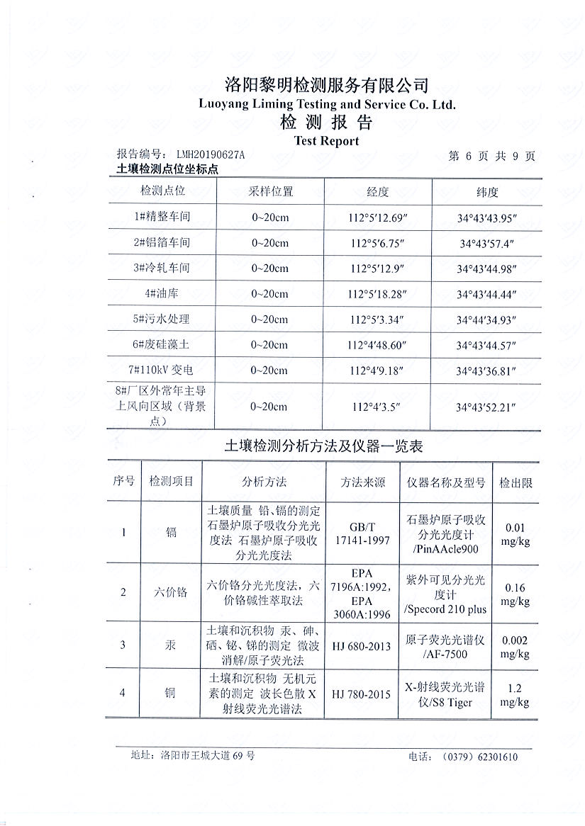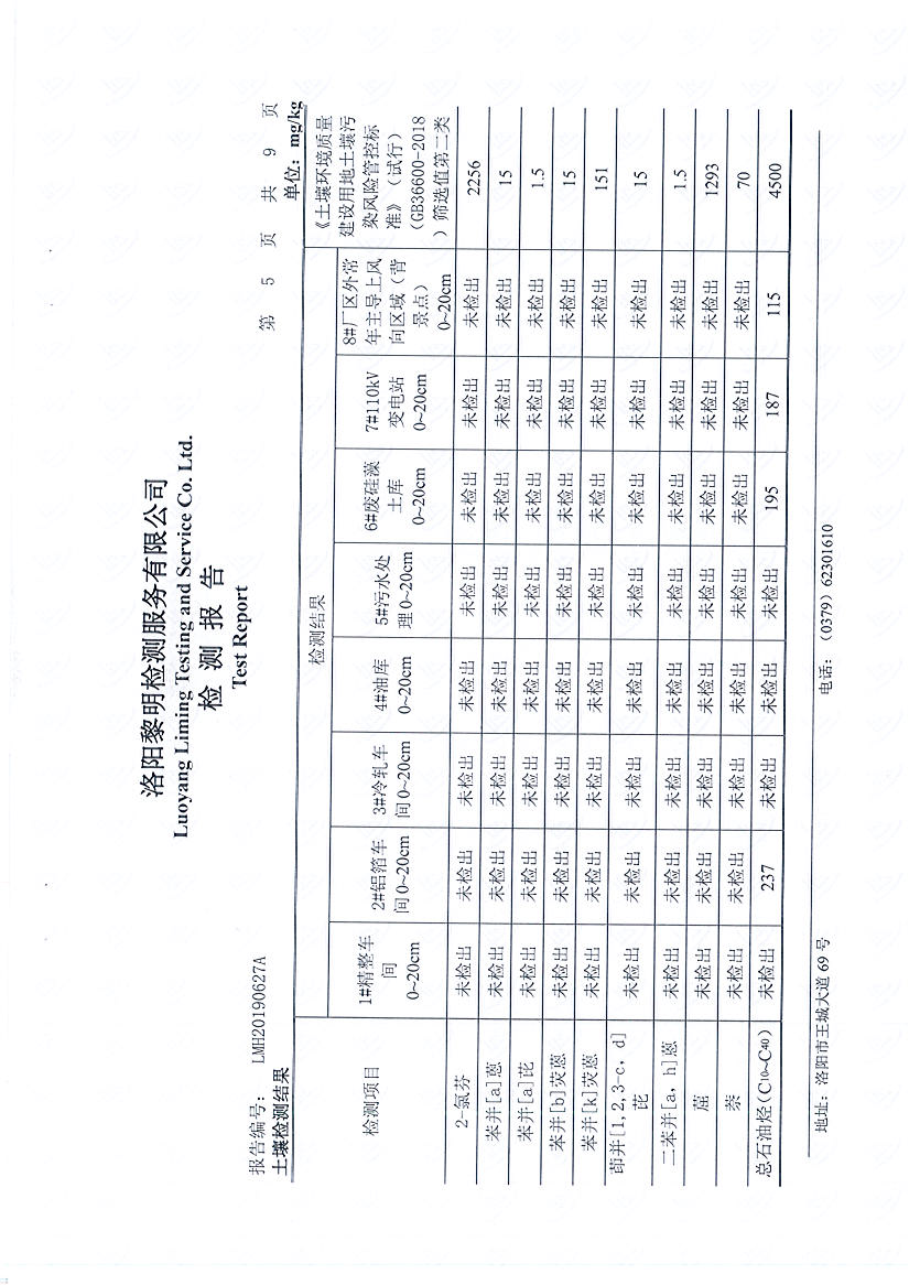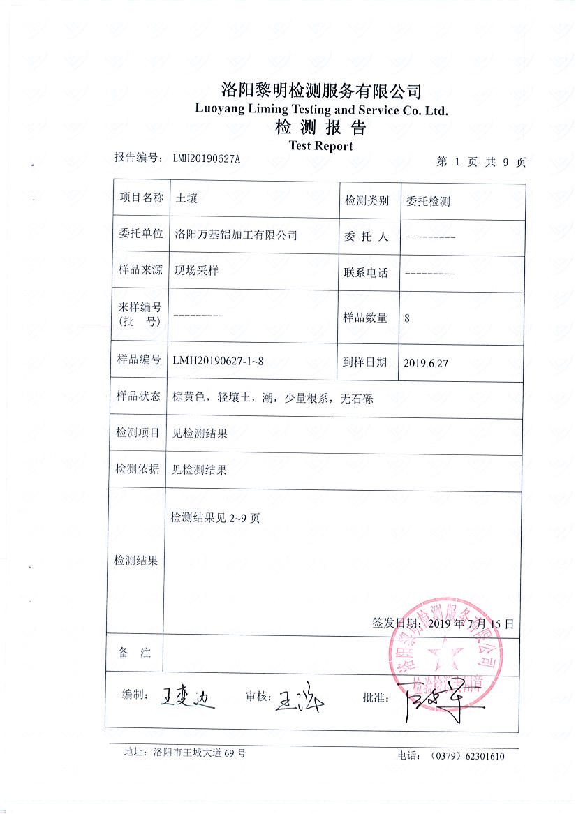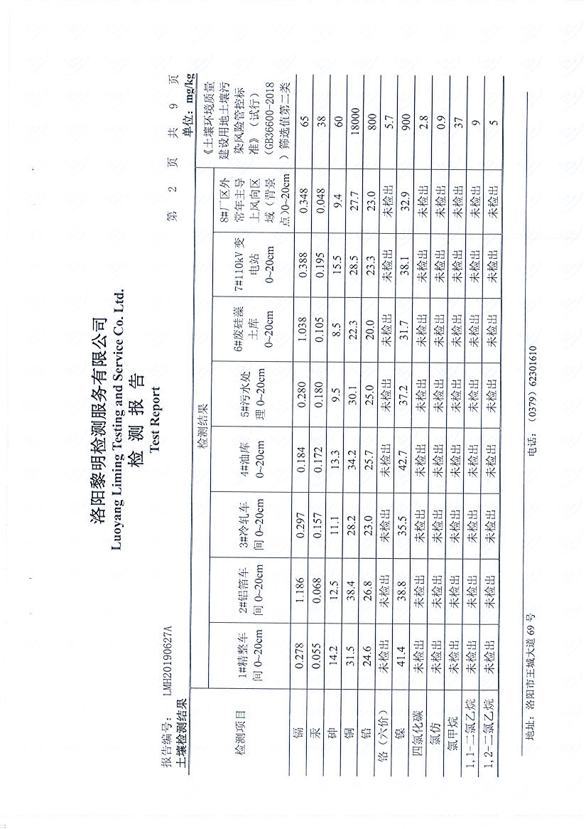 洛阳万基铝加工有限公司2019年土壤检测报告