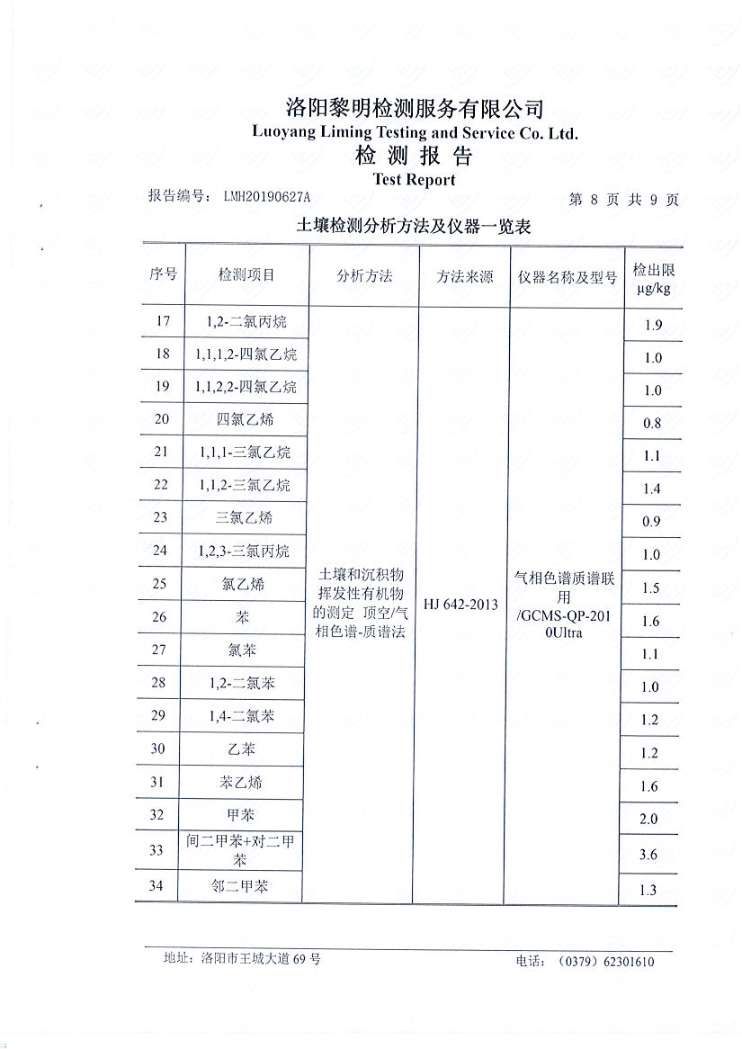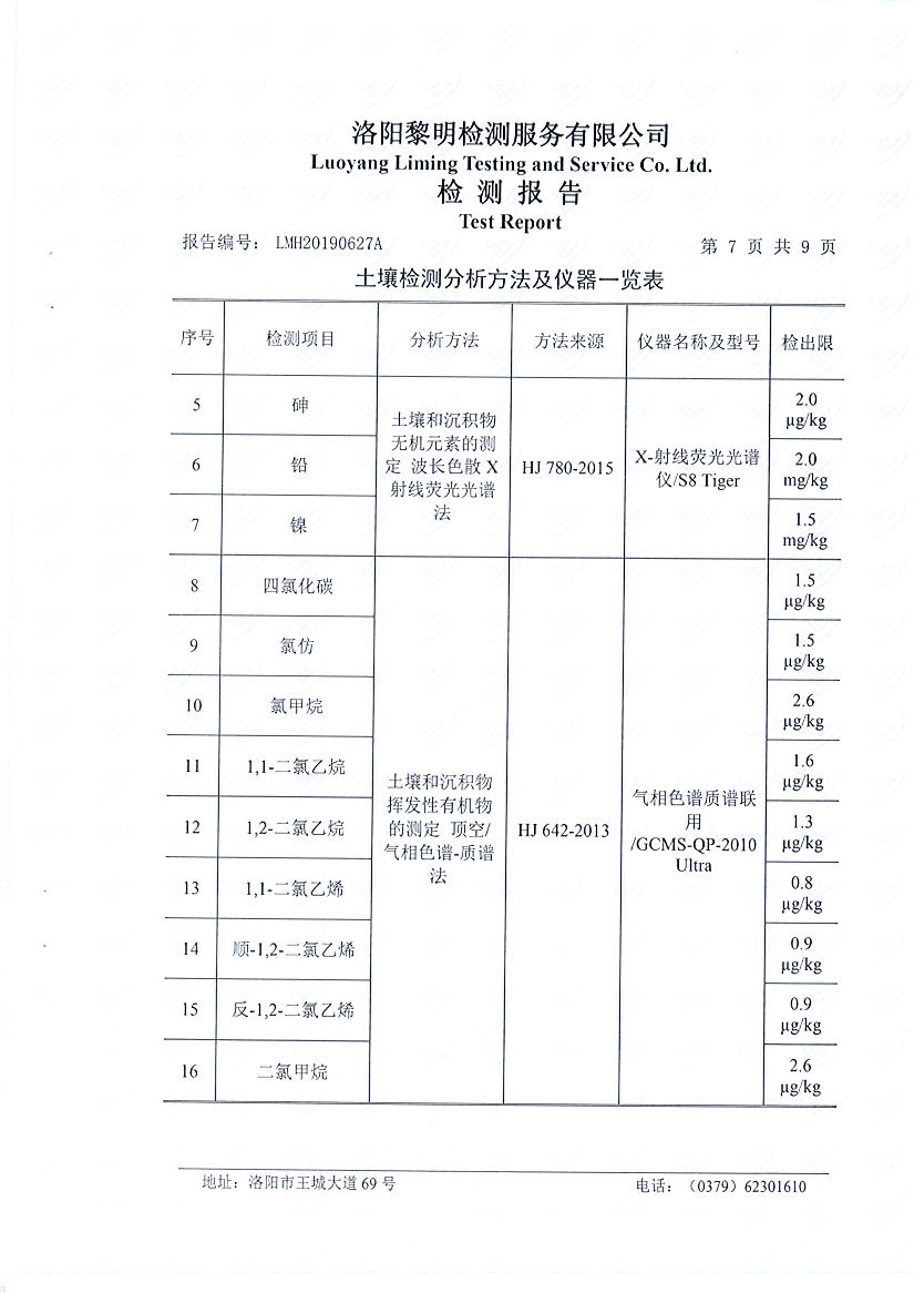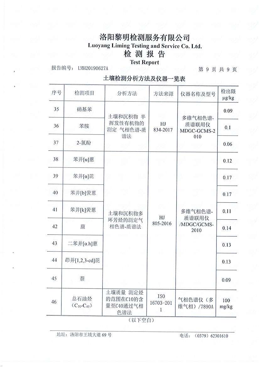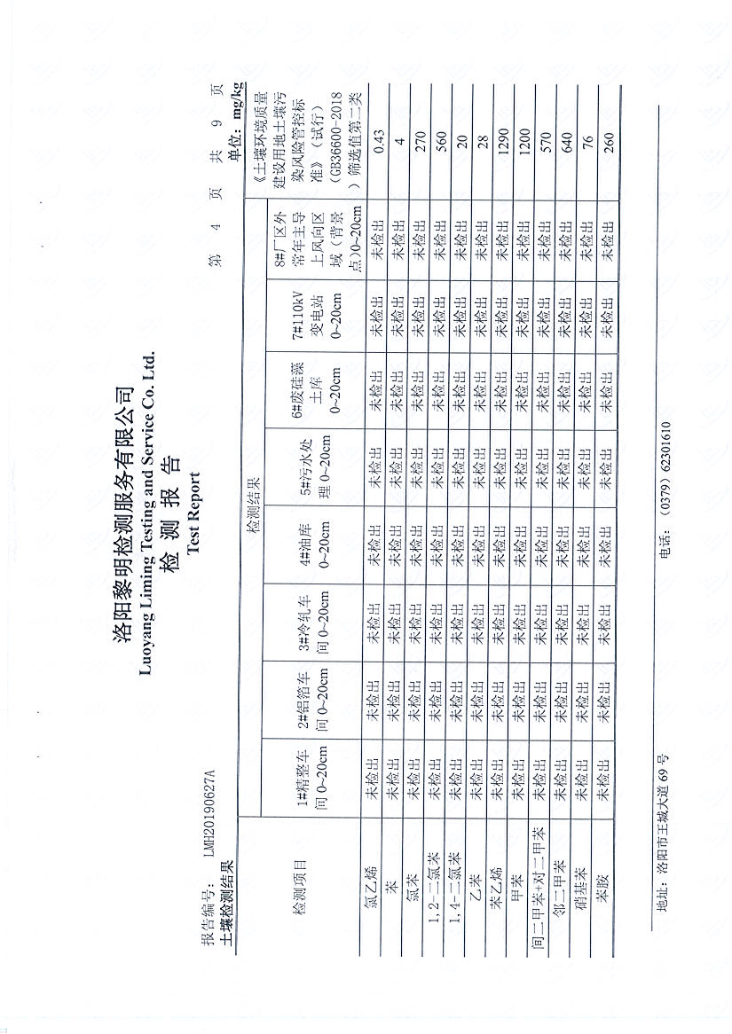 洛阳万基铝加工有限公司2019年土壤检测报告