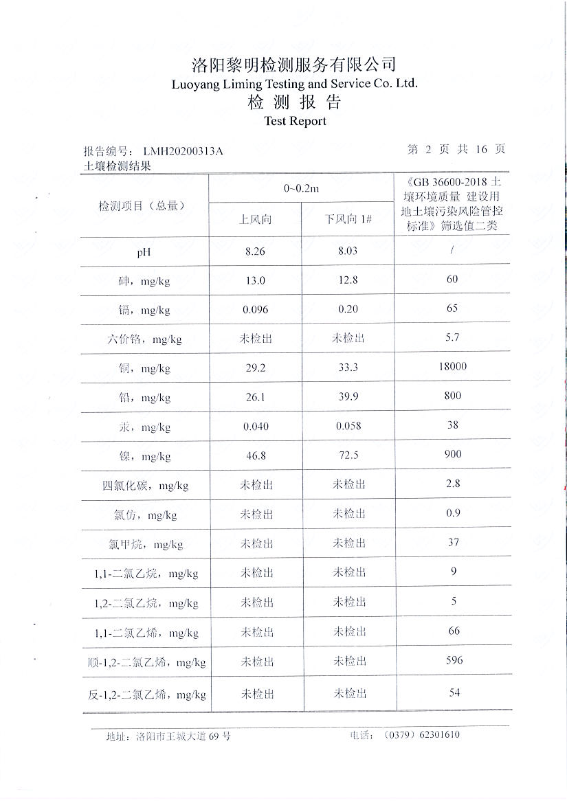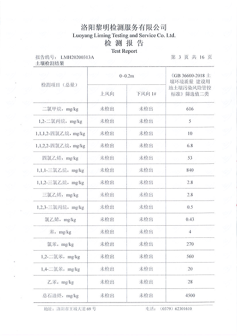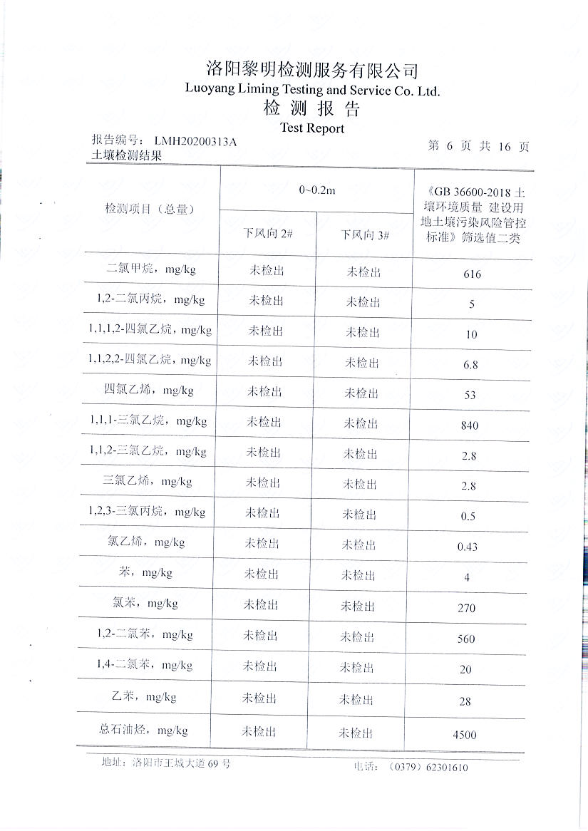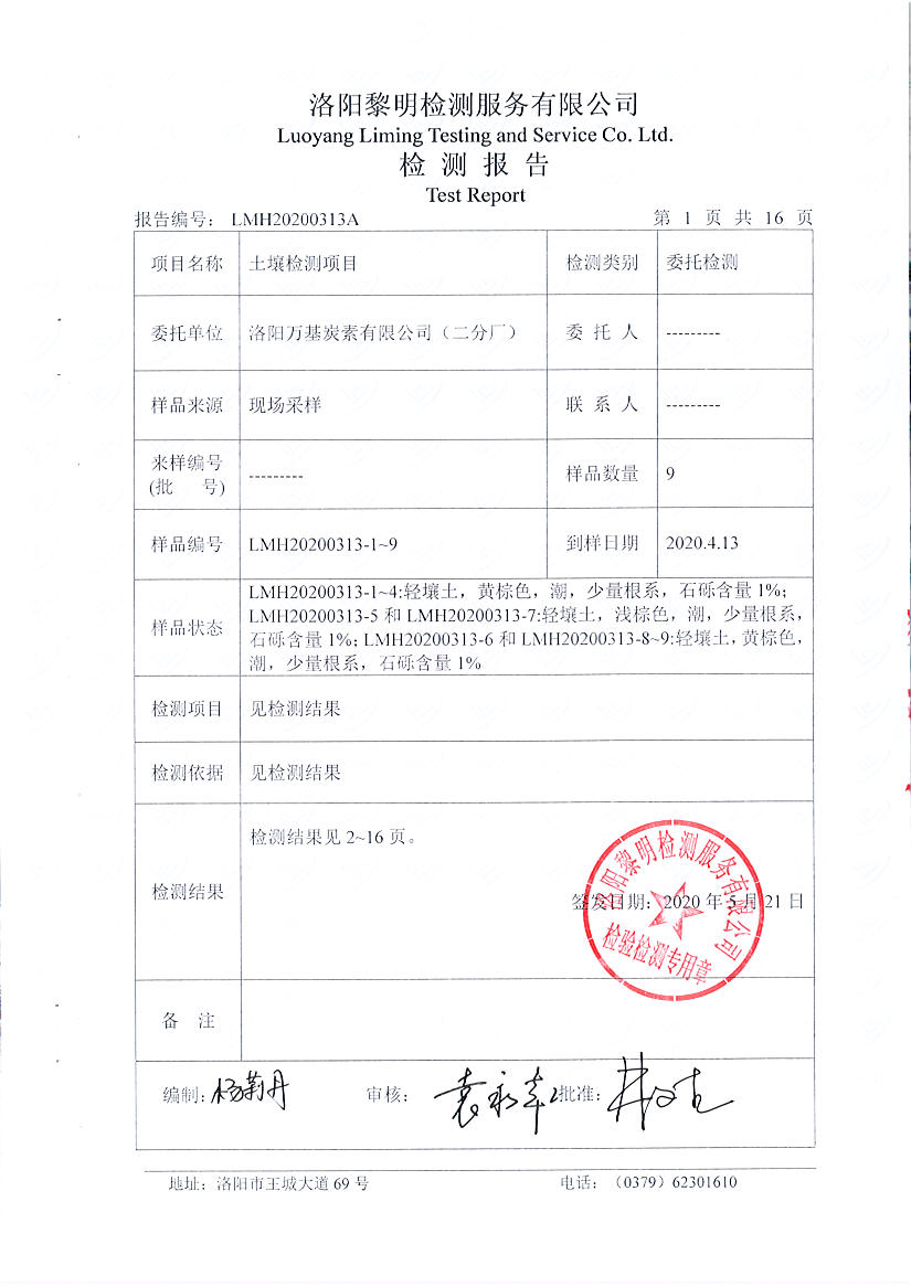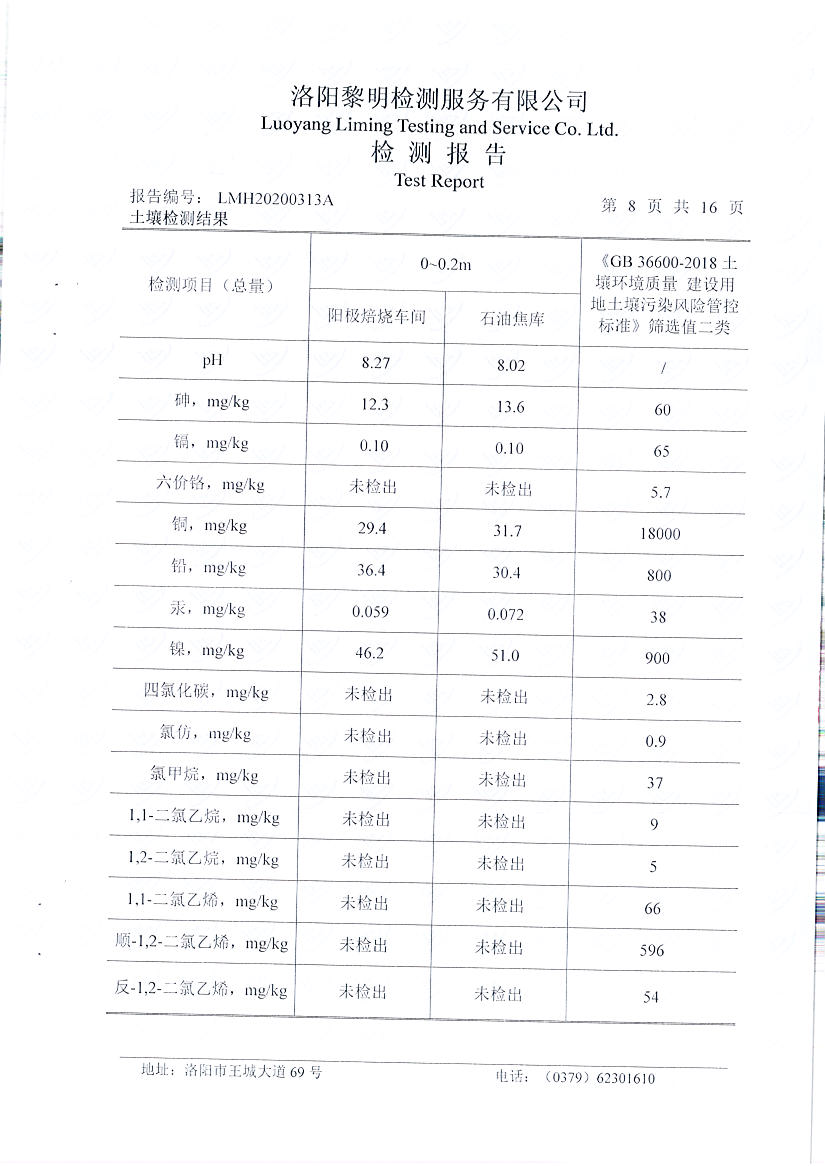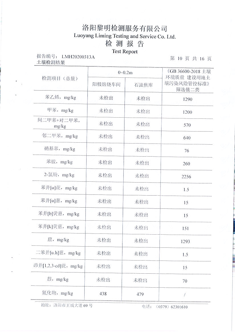 洛阳万基炭素有限公司(二分厂)2020土壤自行检测报告