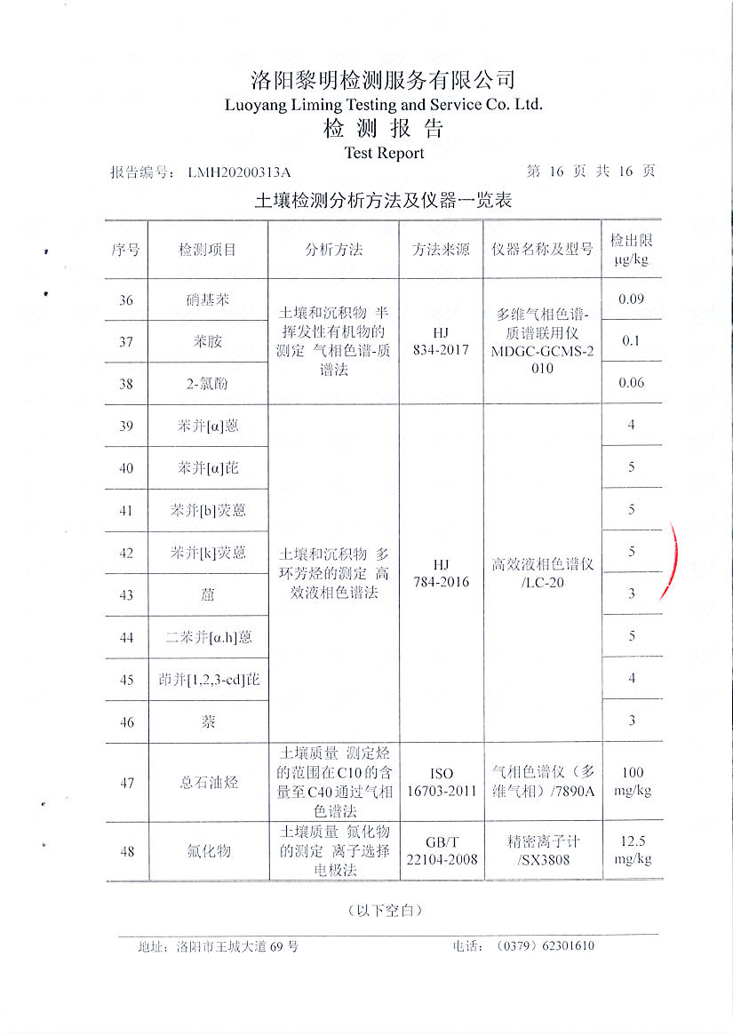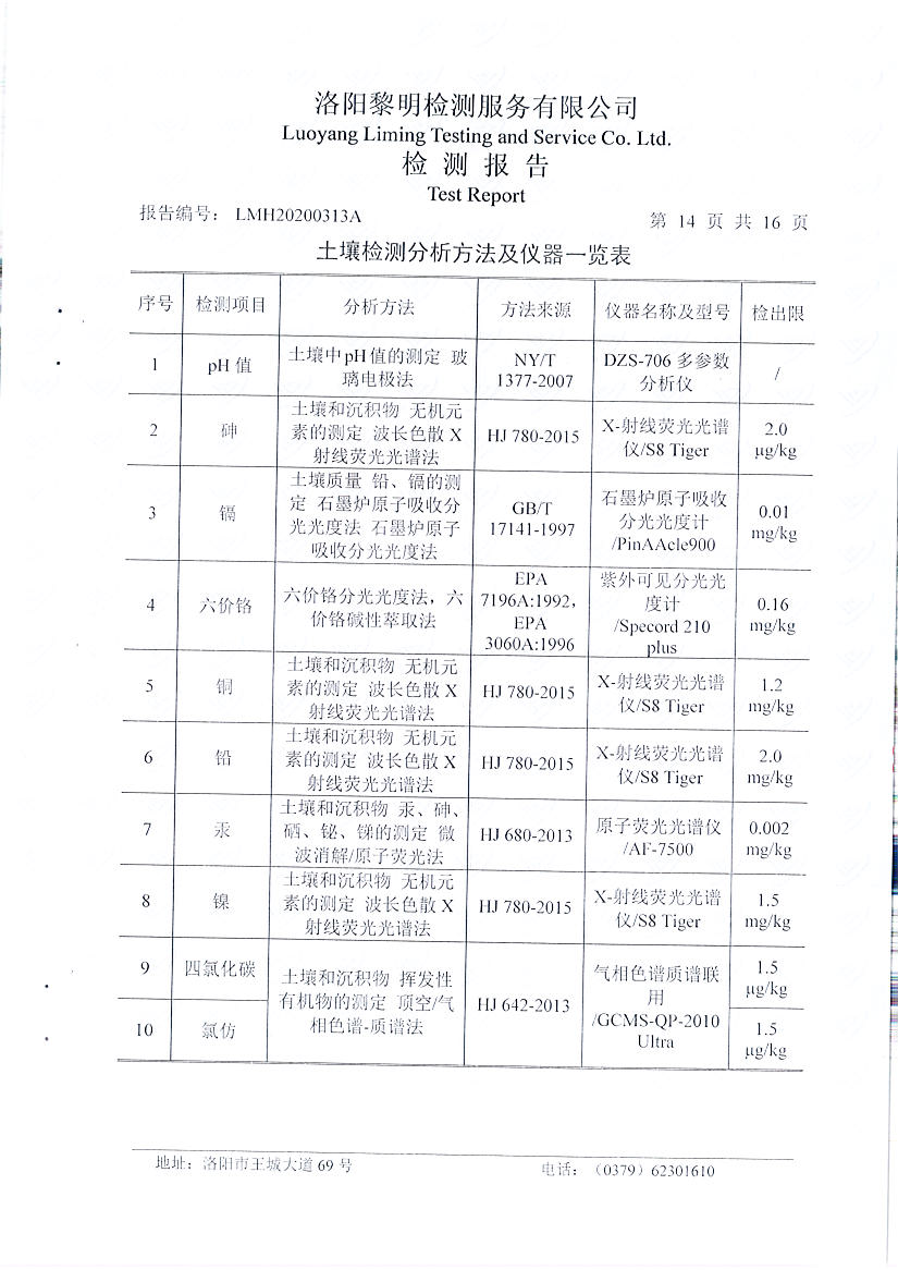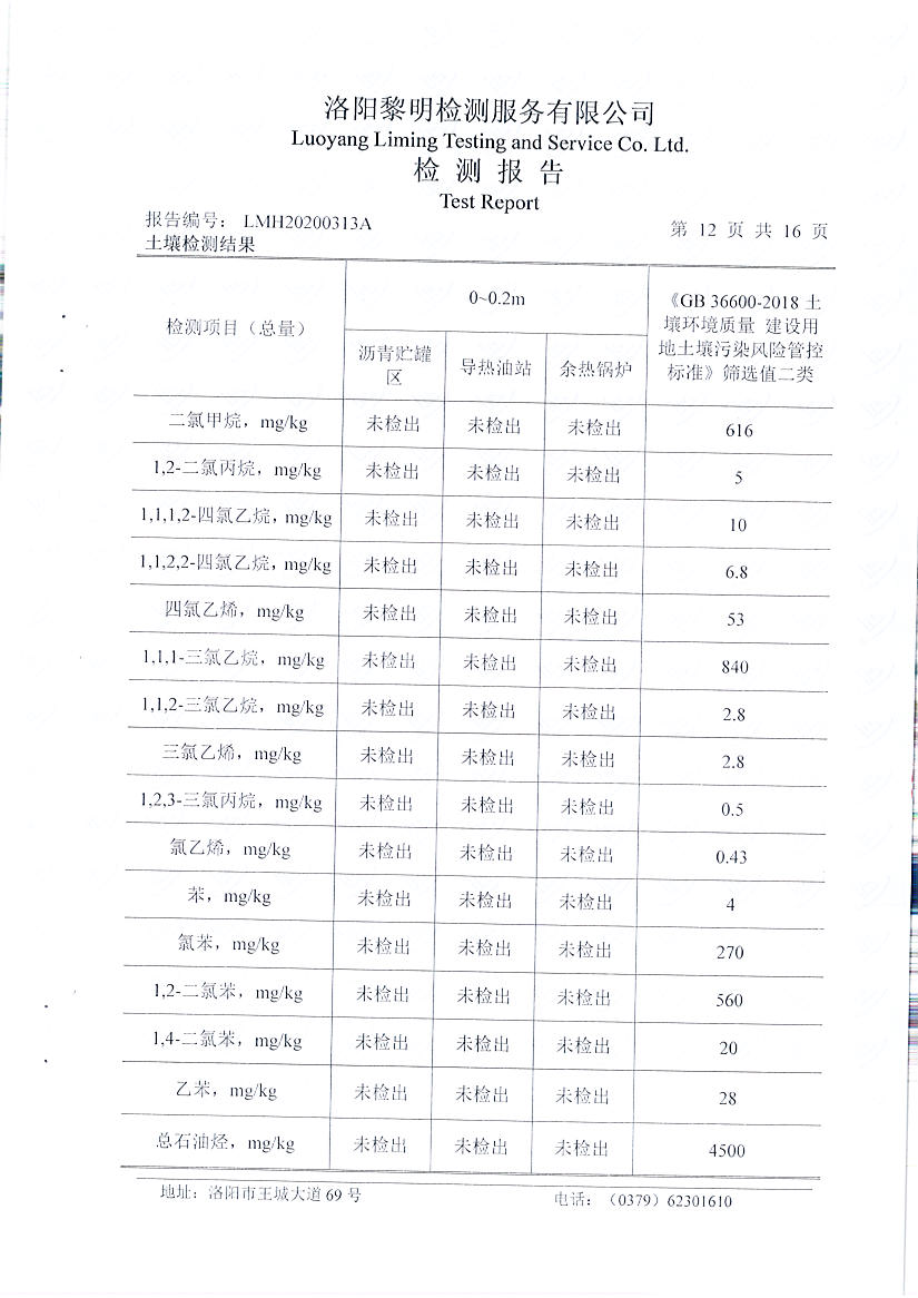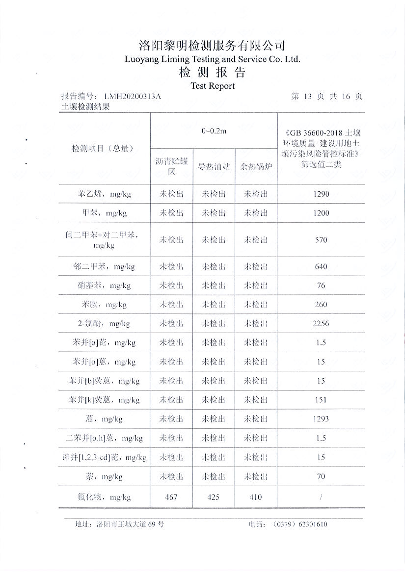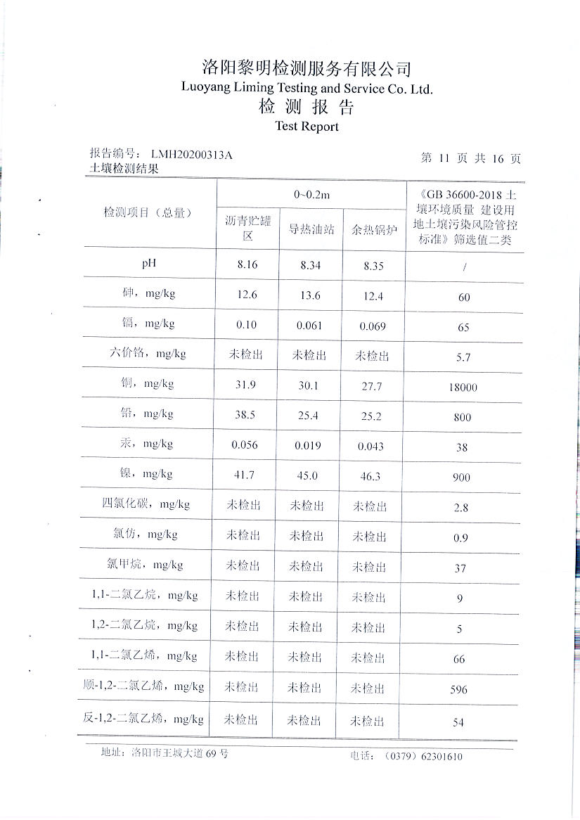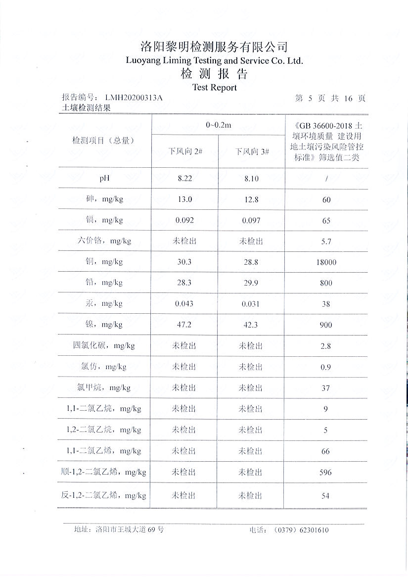 洛阳万基炭素有限公司(二分厂)2020土壤自行检测报告