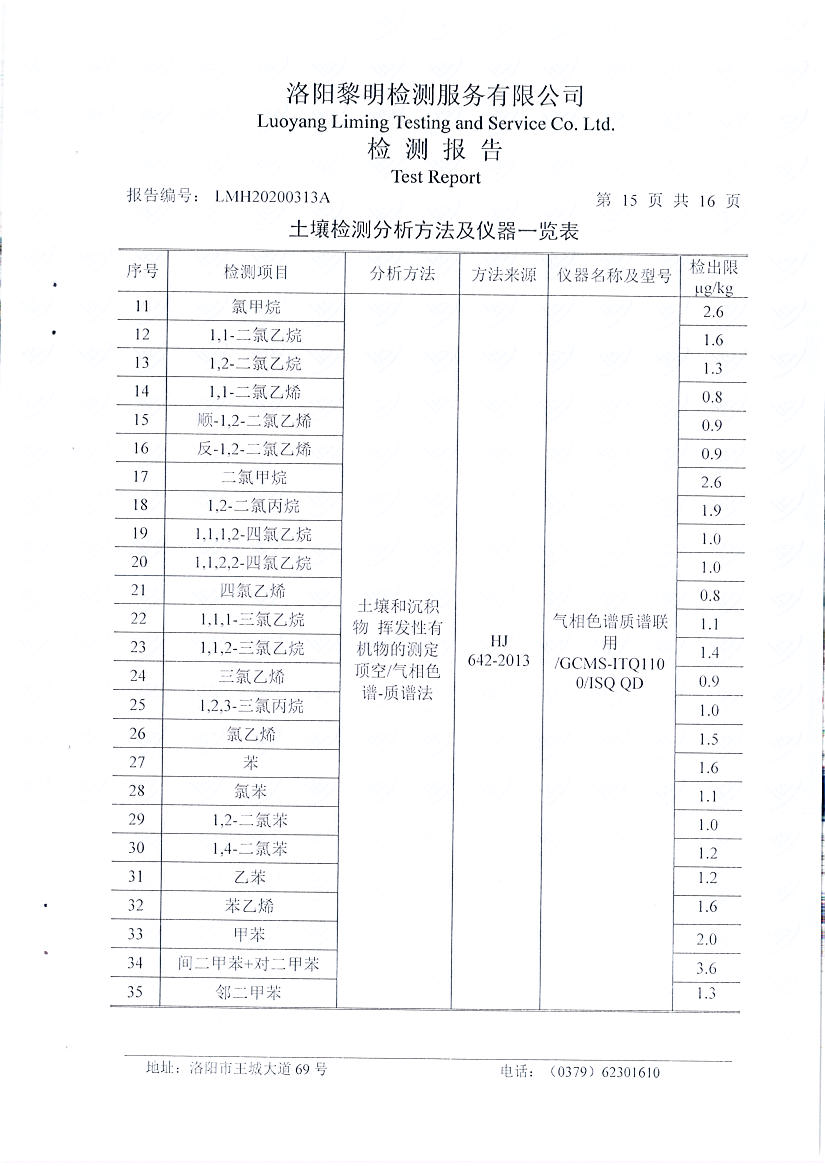 洛阳万基铝加工有限公司2019年土壤自行检测方案