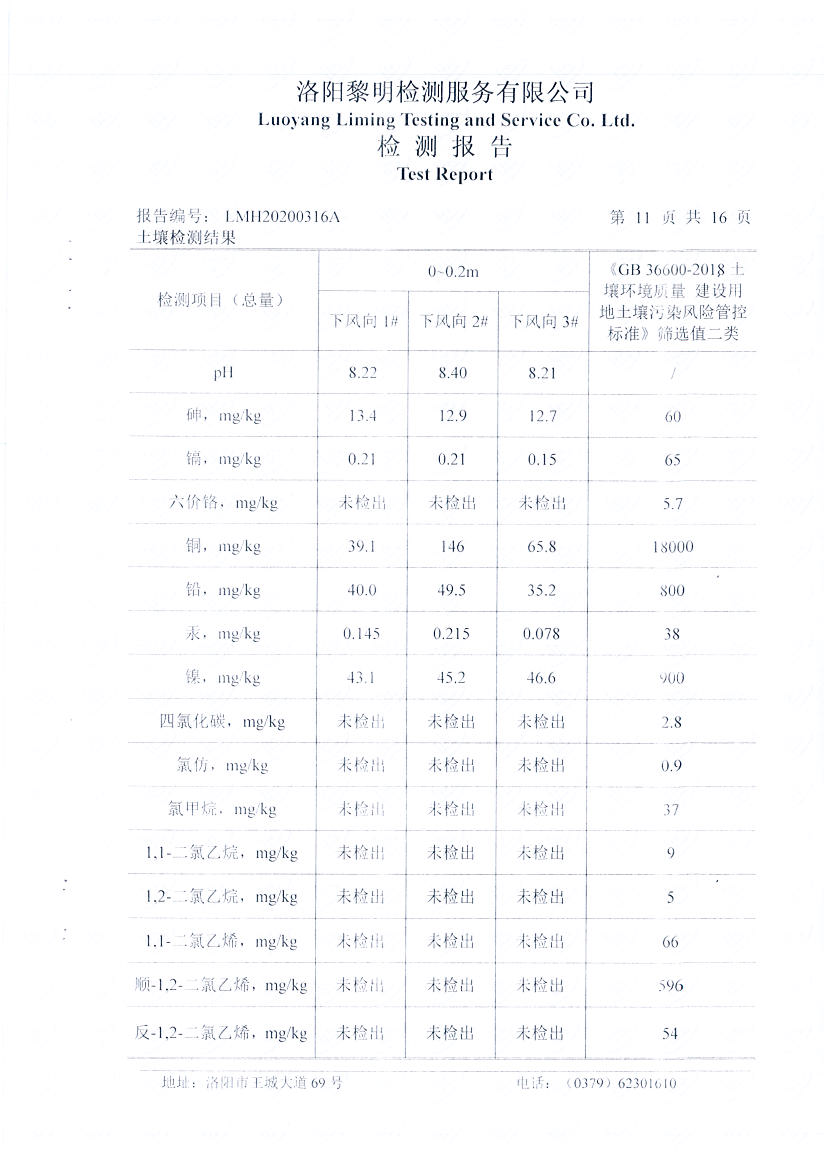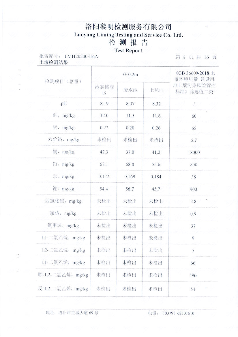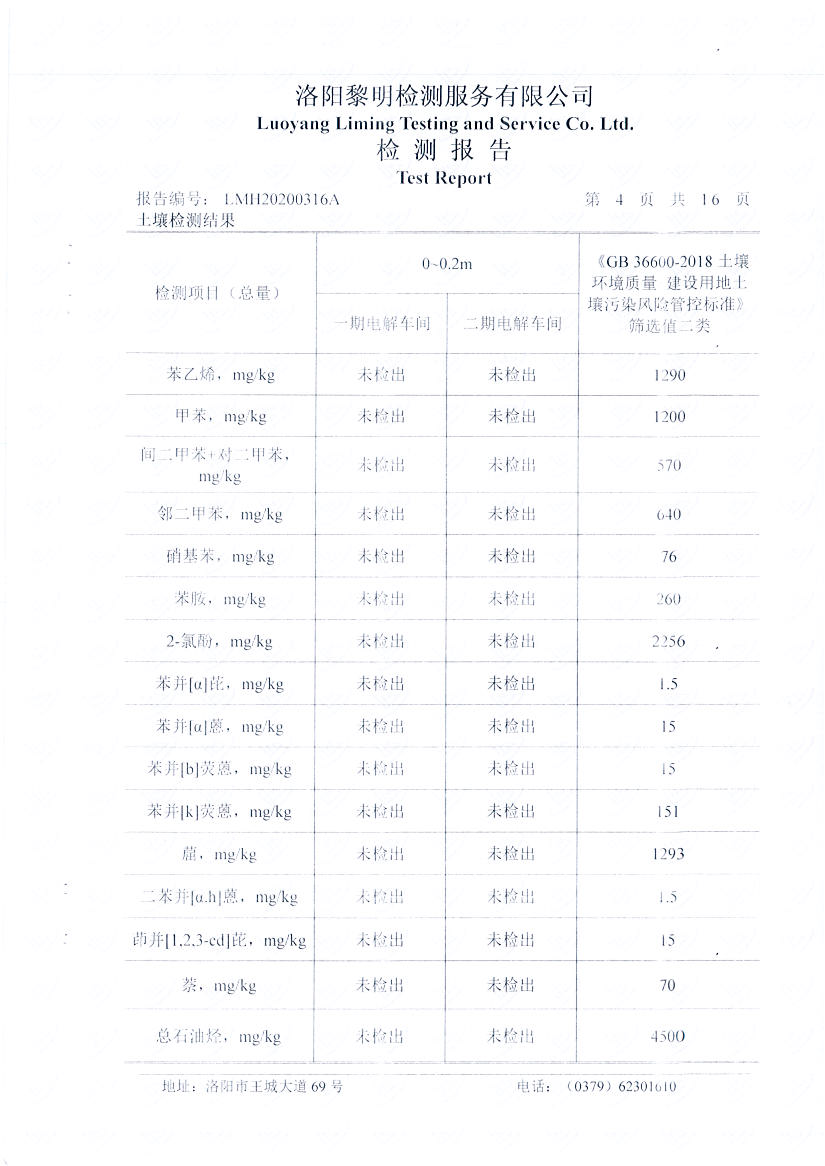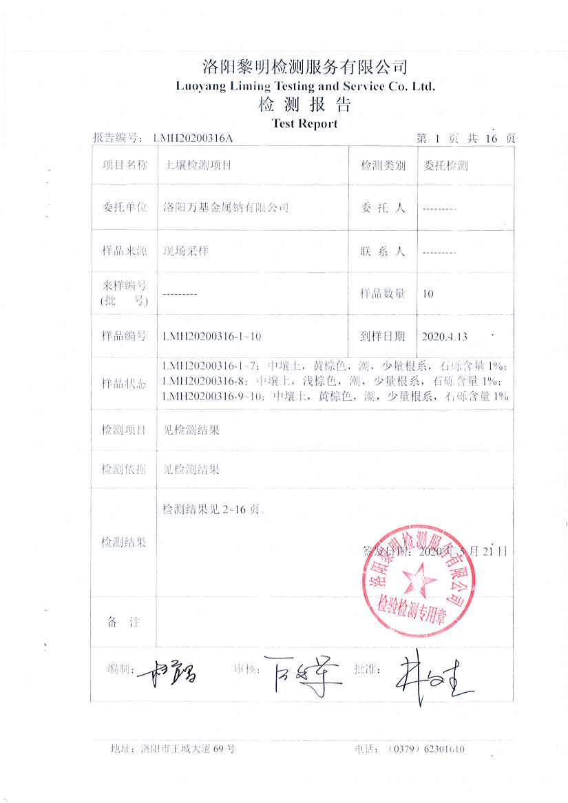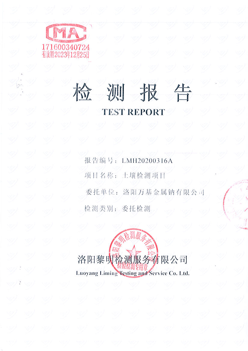 洛阳万基金属钠有限公司2020土壤自行检测报告