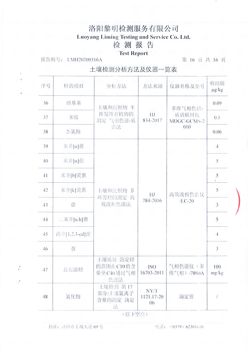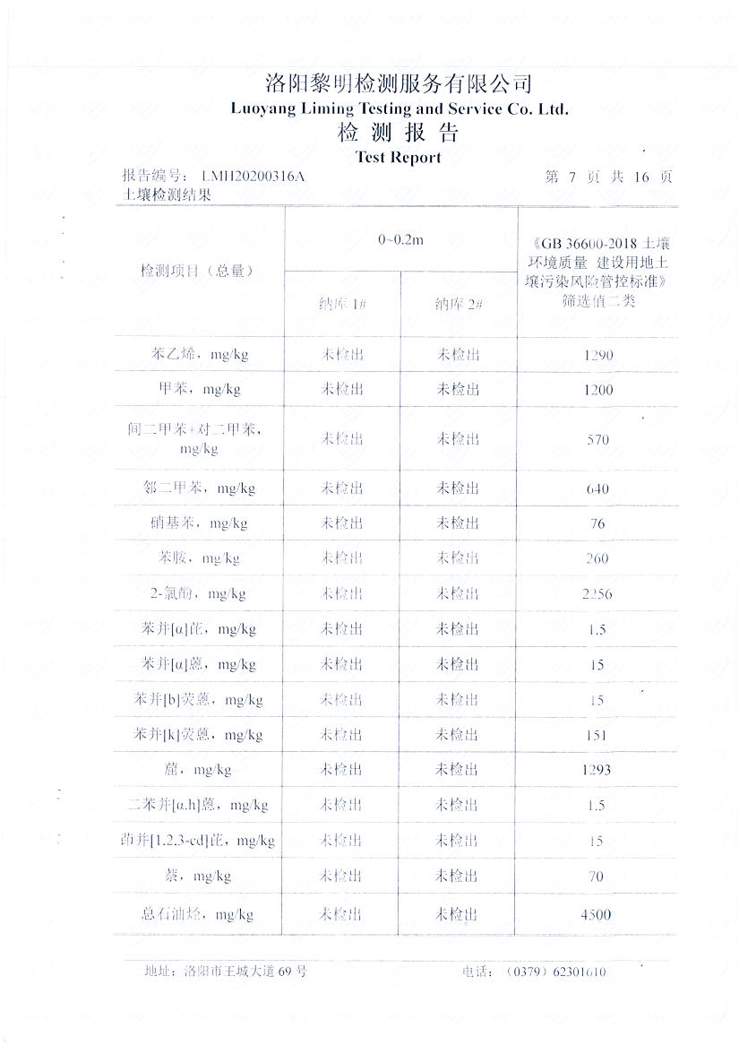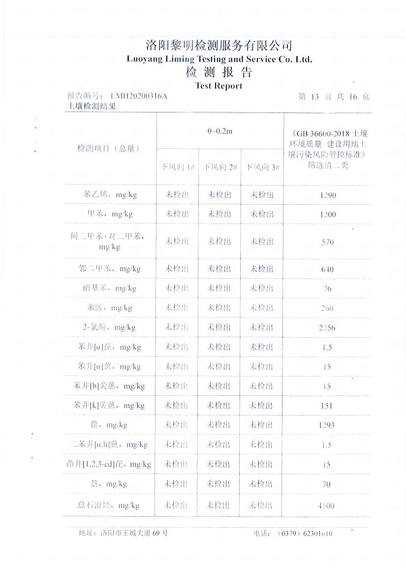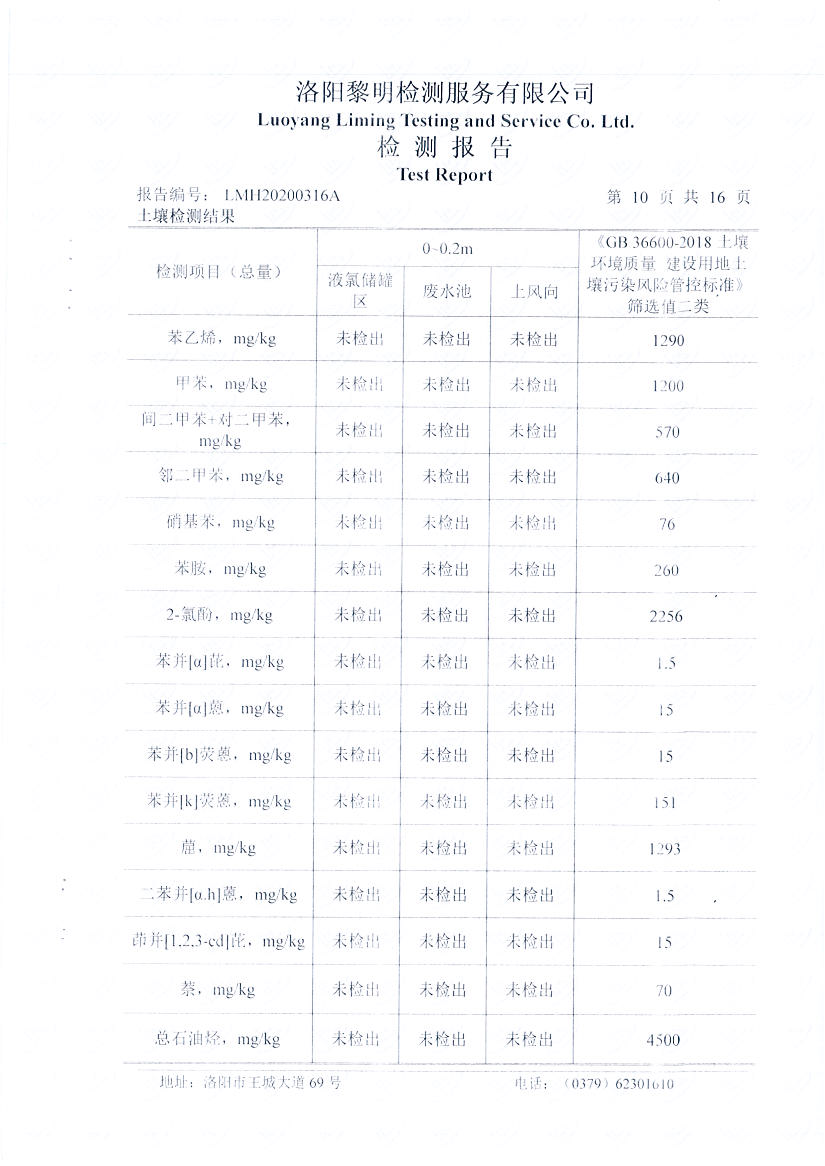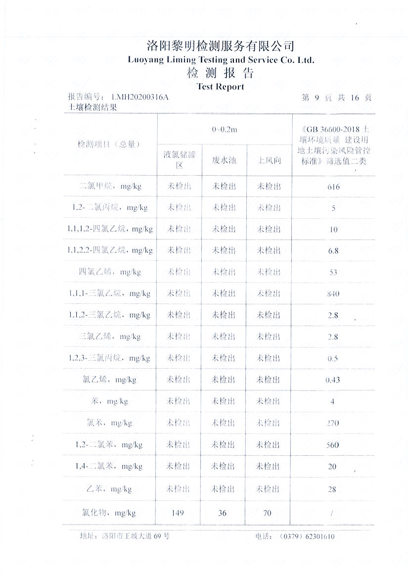洛阳万基金属钠有限公司2020土壤自行检测报告