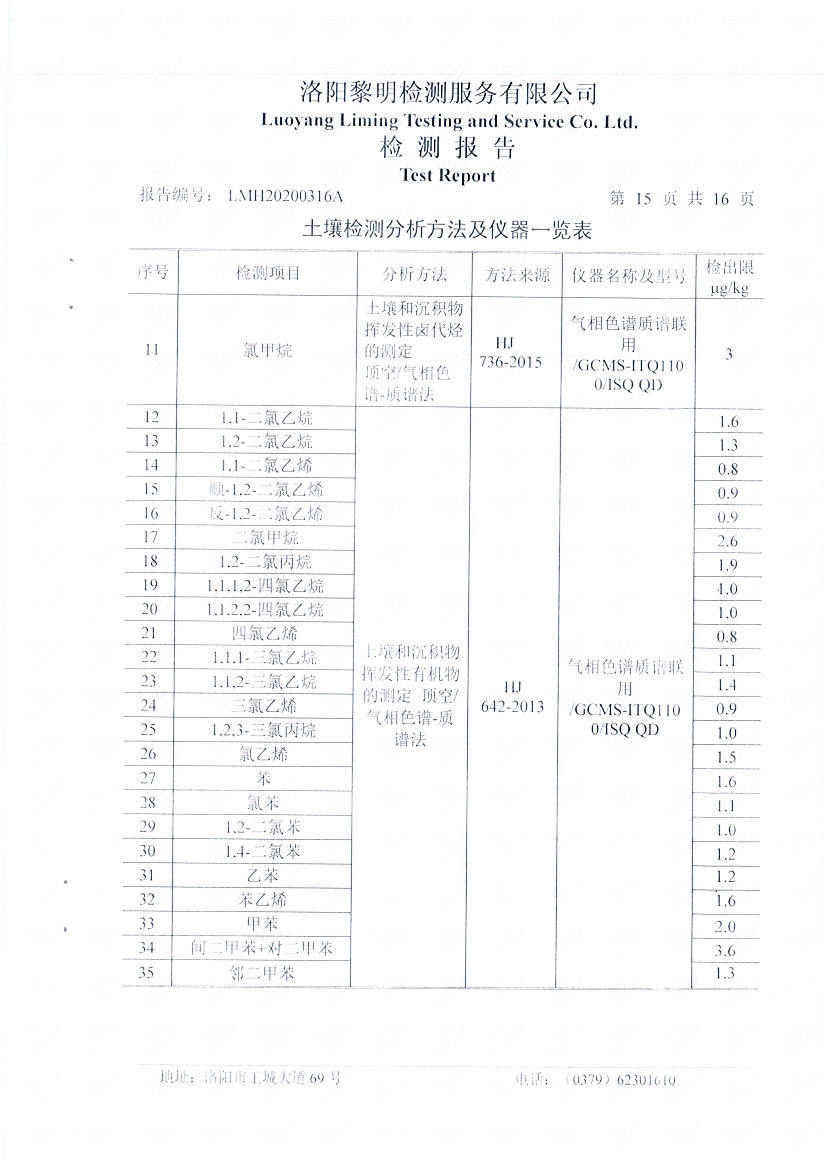 洛阳万基铝加工有限公司2019年土壤自行检测方案