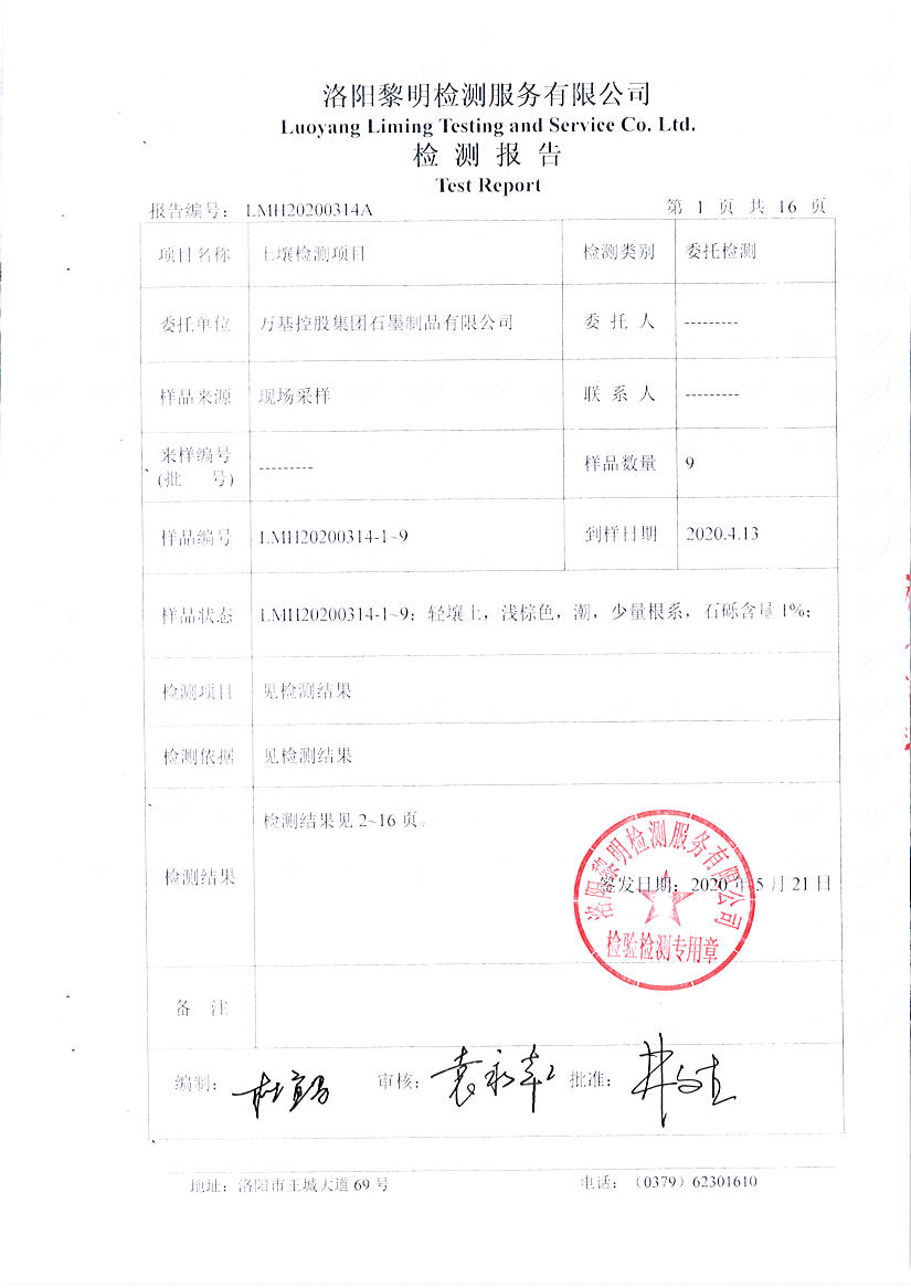 亚洲体育登录平台下载集团石墨制品有限公司2020土壤自行检测报告