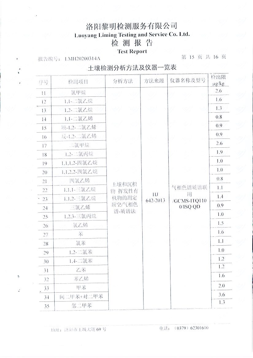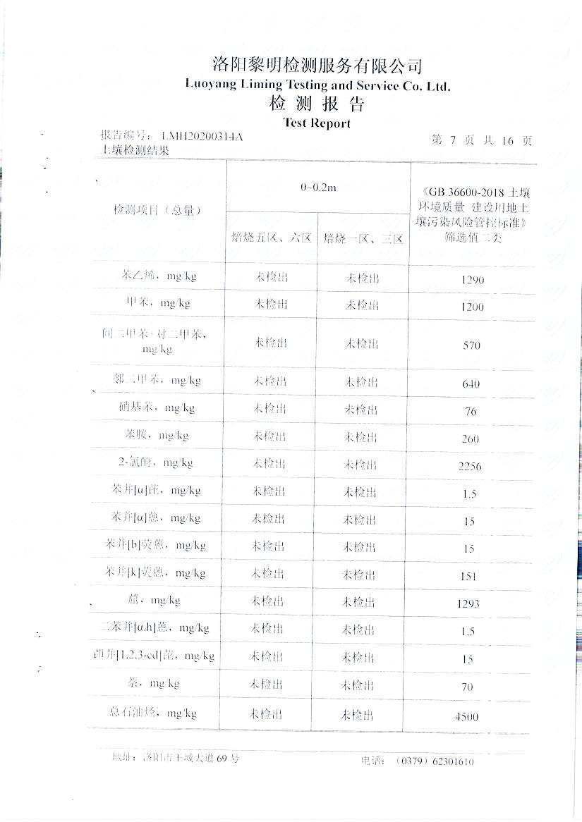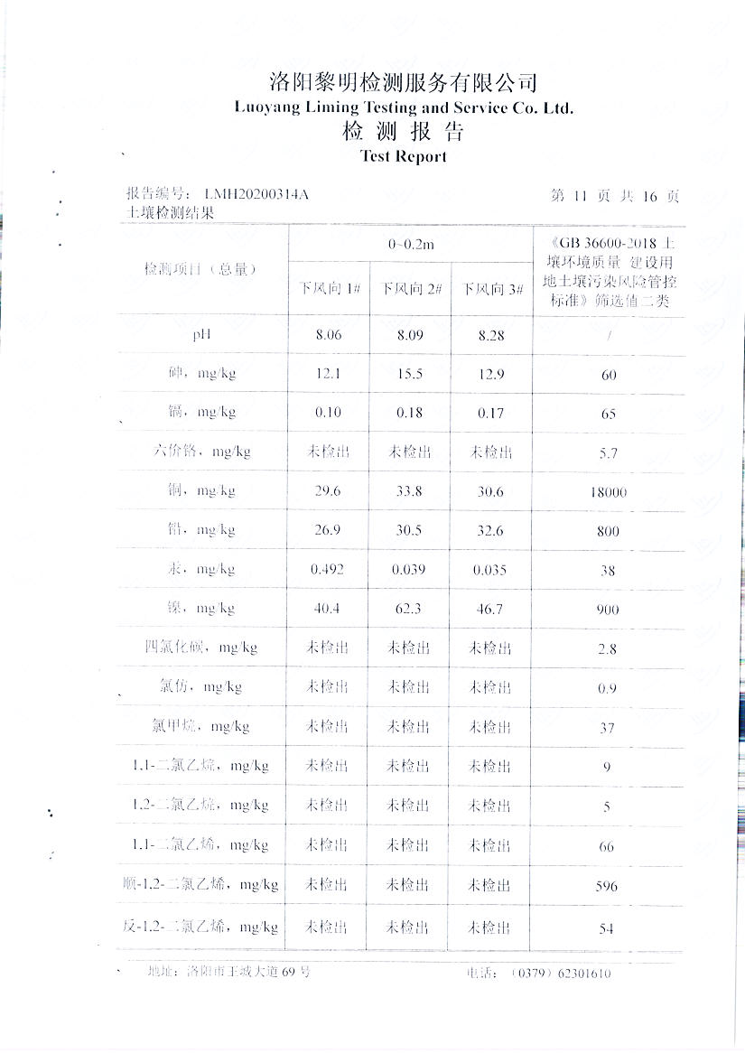洛阳万基铝加工有限公司2019年土壤自行检测方案