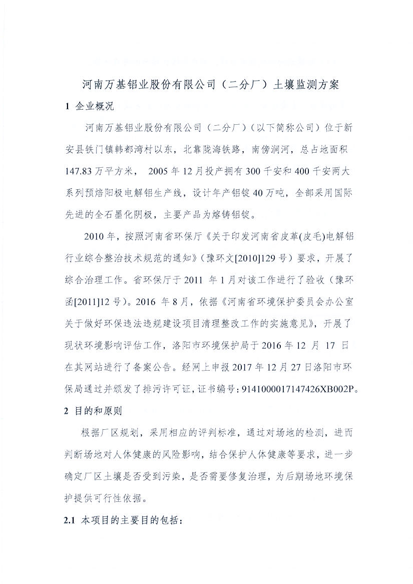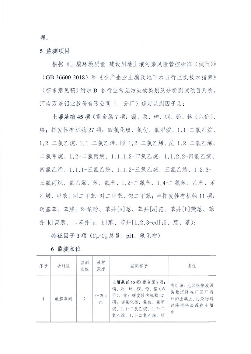 河南万基铝业股份有限公司(二分厂)2020土壤自行监测方案
