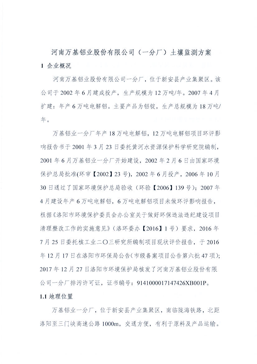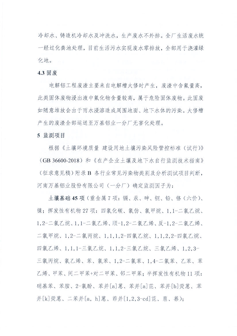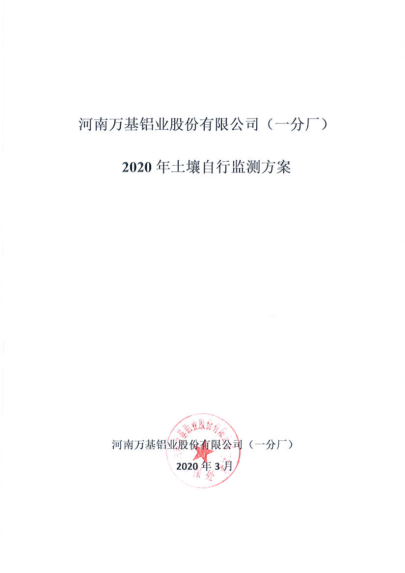河南万基铝业股份有限公司(一分厂)2020土壤自行监测方案